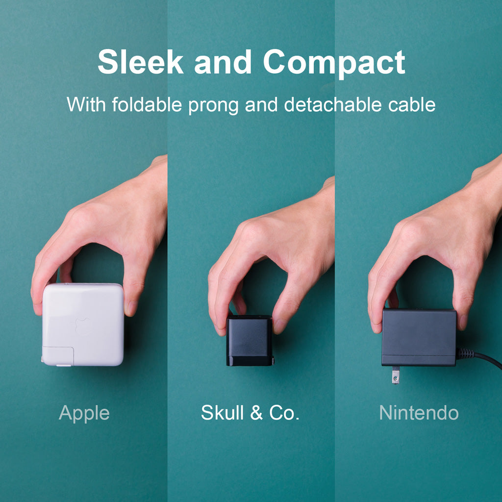 世界で体積最小の45 W電源かもしれません。折り畳み可能なプラグ(両足のプラグ)は、日常的に持ち運びに便利です。(41.8 x 40 x 29 mm)